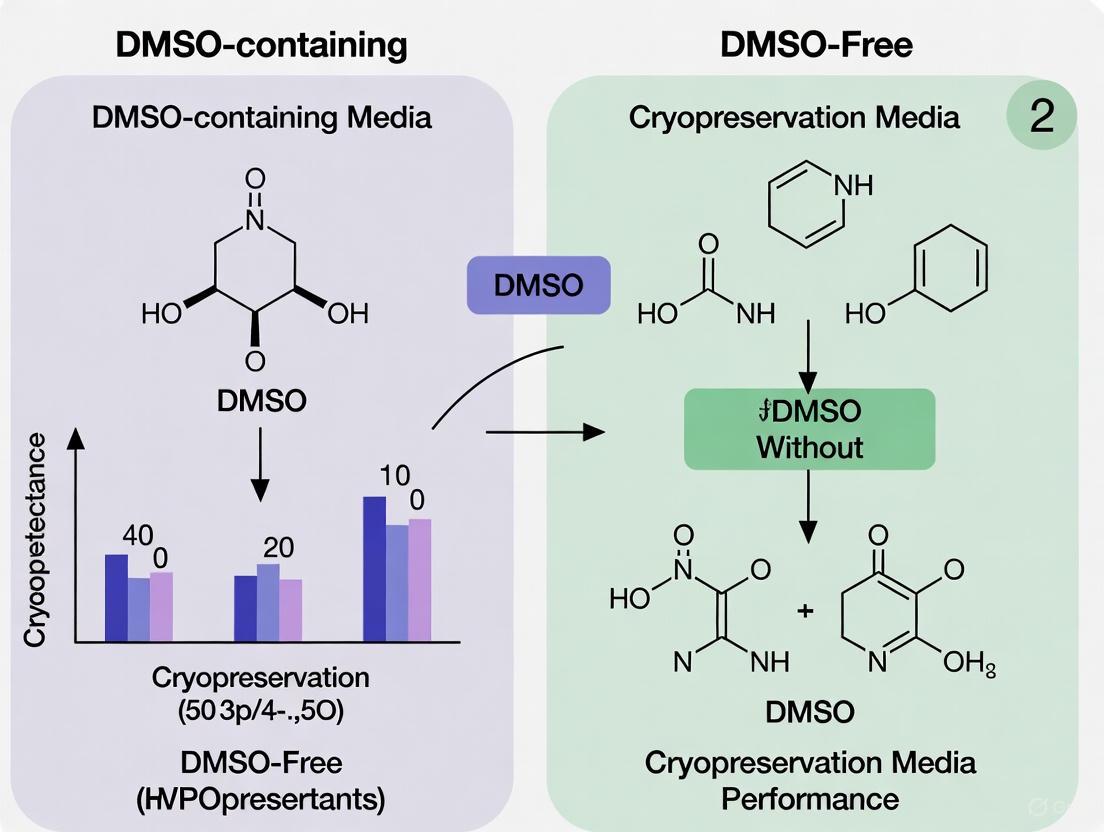 This article provides a comprehensive analysis for researchers and drug development professionals on the critical choice between traditional DMSO-containing and emerging DMSO-free cryopreservation media.