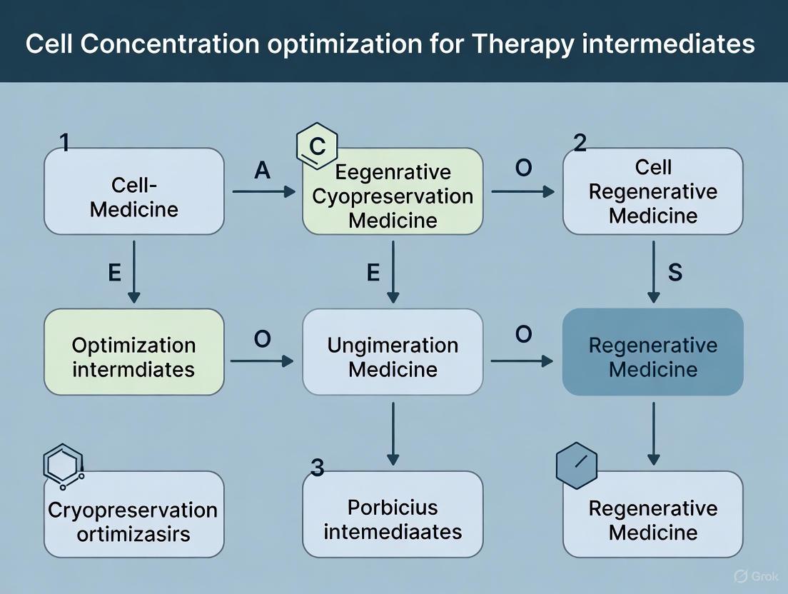 Optimizing cell concentration is not a standalone parameter but a pivotal element integrated within a holistic cryopreservation strategy, profoundly impacting the viability, functionality, and scalability of cell therapy intermediates. A methodical approach that connects foundational principles with rigorous process development, troubleshooting, and validation is essential for success. As the field advances, future efforts must focus on developing standardized, scalable protocols, reducing reliance on DMSO, and creating advanced analytical methods to detect subtle cryopreservation-induced stresses. By mastering these elements, researchers can overcome a major bottleneck in manufacturing, paving the way for more robust, effective, and accessible cell therapies for patients.